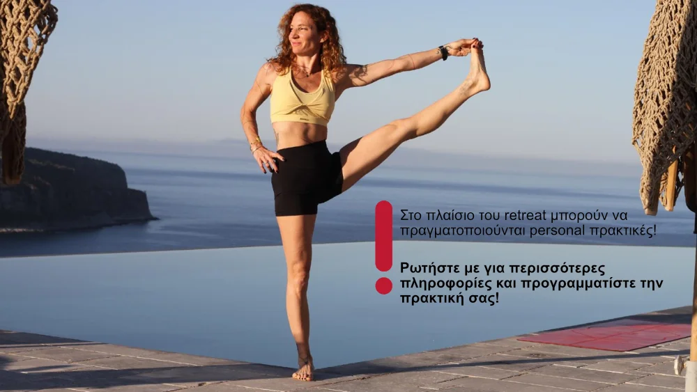 | Σάββατο | 08:30 morning yoga session to energize the 5th chakra ◉ pranayama (τεχνικές αναπνοών) ◉ small meditation 10:00 πρωινό 11:30-17:00 hiking & ελεύθερος χρόνος για spa 17:30-18:30 διάφορες πρακτικές αναπνοών (pranayama): φόρτιση κυττάρων και απελευθέρωση 19:00-20:30 yin yoga 20:30 δείπνο |